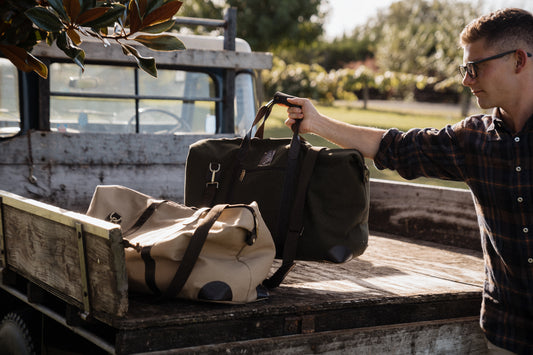 Weekend Bag Large Canvas with Leather Trims - British Olive Green