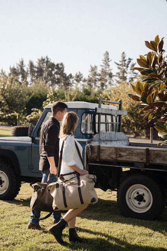 Weekend Bag Large Canvas with Leather Trims - Sand